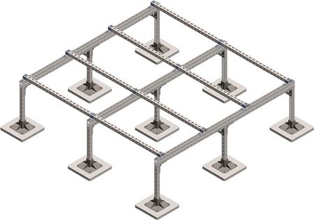 Квадратная конструкция Опорные Технологии Опорная рама для агрегатов массой до 500кг. производится из стальных профилей с оцинковкой поверхности. Такое изделие надежно защищено от внешнего воздействие и обеспечивает продолжительный срок эксплуатации. Установлено на специальные опоры для большей устойчивости.