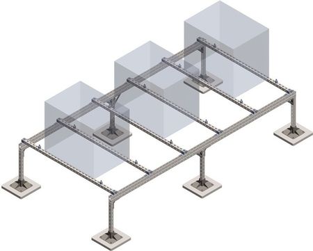TMC Опорная рама для трех блоков до 330кг эта легкая и практичная опора подходит для создания модульных систем, позволяя проводить монтаж без ущерба для инженерных сетей и установленного основания. Система опирается на мощные опоры, а надежное металлическое исполнение гарантирует долгий срок службы конструкции.
