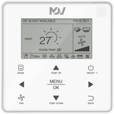 Пульт управления Mdv упрощает управление системой кондиционирования. Благодаря двухпроводному подключению есть вариант для одного внутреннего блока установить два пульта управления, тем самым создавая возможность комфортного управления несколькими пользователями с разных расстояний.