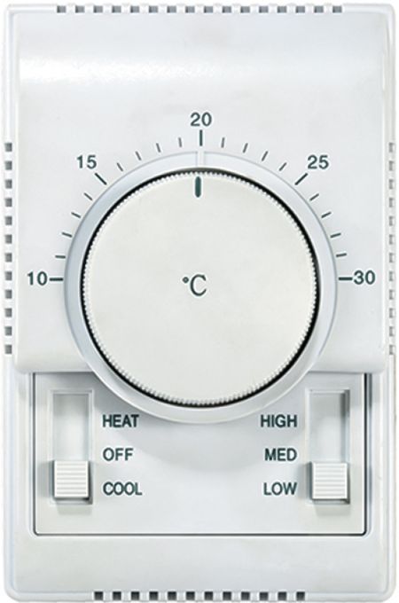 Термостат SYSCOOL (СИСКУЛ) SYS KJR-18 обеспечивает индивидуальное управление системами кондиционирования. Механическое изделие позволяет выставить режим работы, включить или отключить устройство, а также установить необходимую температуру. Также доступен выбор скорости вращения вентилятора.