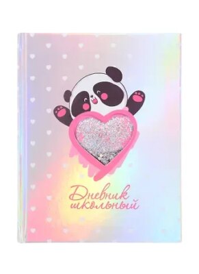 Дневник шк. «ПАНДА», 7БЦ, голограф.бумага, аппликация(пайетки,глиттер)