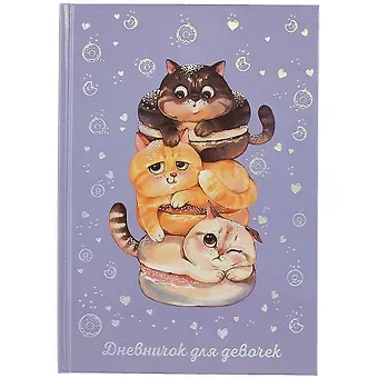Дневничок для девочек А5 48л «Сытые котики» 7БЦ, глянц.пленка, тиснение цв.фольгой, полноцв.блок, офсет 80г/м2
