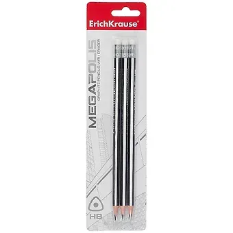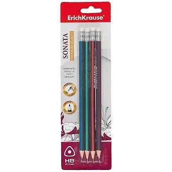 Эргономичный трехгранный арандаш с ластиком из отборной древесины, твердость НВ. Специальная пропитка древесины и сплошная проклейка грифеля обеспечивает