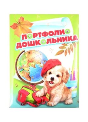 Портфолио дошкольника А4+ «ЩЕНОК И ГЛОБУС» 20ф ПВХ, 15 вкладышей, тв.обл., поролон, тиснение фольгой