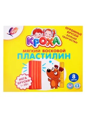 Пластилин 08цв 280гр «Кроха» восковой, мягкий, мега-бруски, к/к., стек, Луч