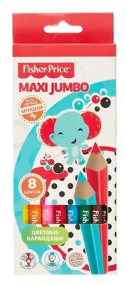 Карандаши цветные для малышей, Набор 8 цветов, MAXI Jumbo Mattel Fisher Price, деревянный корпус, картонная упаковка