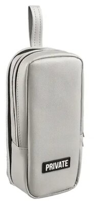 Пенал-косметичка 2отд. «Private» серебристый, 21*9*8см, вертикальный, мат.иск.кожа, молния, фиксация магнитом, каучук.аппликация, петля.