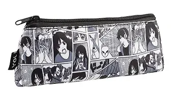 Вместительный пенал. Изготовлен из ткани с принтом в стиле страницы из манги. Можно использовать для хранения как канцелярских принадлежностей, так и косметики.