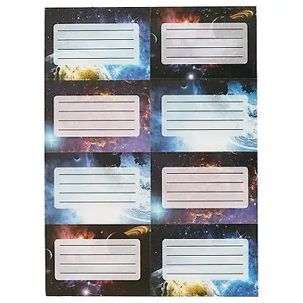 Наклейки для тетрадей 24шт. В упаковке 3 листа с 8 наклейками. Размер листа 14*19см. Размер одной наклейки 7*4,7см.