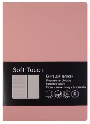 Книги для записей А6+ 80л. Иск.кожа интеграл.(SOFT TOUCH). Бум. оф.70г/м2,тон.,комб. блок (в лин., точку, без лин.),скруг.угл.,цв.форз.,цв.