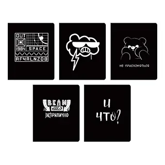 Тетрадь 48л кл. «TOTAL BLACK. Not» цветной диз.картон, трафаретн.печать