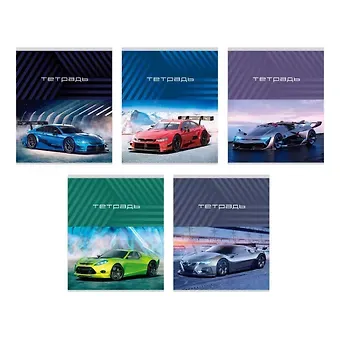 Тетрадь 48л кл. «Спортивные авто» мел.картон, выб.лак, ассорти