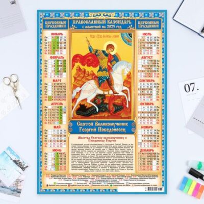 Календарь листовой А2 «Георгий Победоносец» 2025 год, 42×60 см Линия успеха