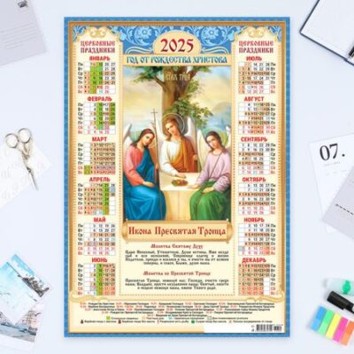 Календарь листовой А2 «Троица» на синем, 2025 год, 42×60 см Линия успеха