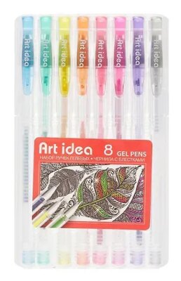 Набор гелевых ручек с блестками Art idea 8 шт. Вентилируемый колпачок, пластиковый корпус, Диаметр шарика 0,8мм, Ширина линии 0,4мм
