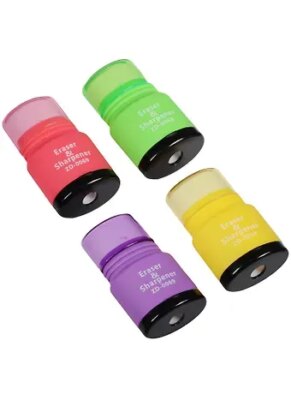Уникальная точилка с ластиком предназначена для заточки чернографитных и цветных карандашей. С одной стороны точилка, с другой — ластик.