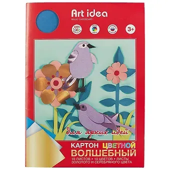 Картон цветной «Волшебный» 10 цветов, включая золото и серебро, 10 листов А4, немелованный, в папке, Art idea.