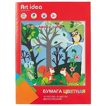 Бумага цветная, 8 цветов, 16 листов А4 мелованная, двухсторонняя, на скрепке, Art idea.