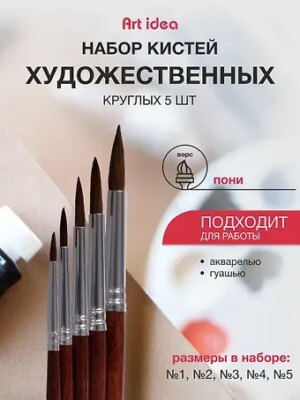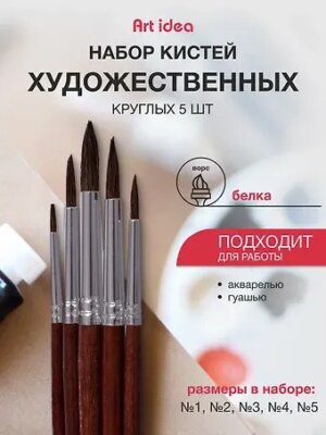 Натуральные кисти Art idea отлично подойдут для регулярных творческих работ. В набор входят 5 круглых кистей — от «единички» до «пятёрки».