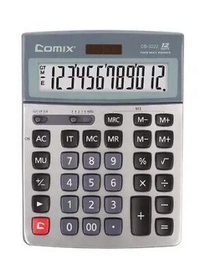 Калькулятор 12 разрядный настольный, металлическая панель, картонная коробка с подвесом, Comix