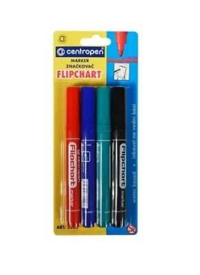 Маркеры 4 цвета «FLIPCHART» для флипчарта 2,5мм, круглые, блистер, Centropen