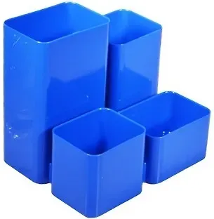 Органайзер для пишущих принадлежностей и мелких канцелярских предметов. Имеет 4 удобных отделения разной высоты. Компактный и устойчивый. Без наполнения.