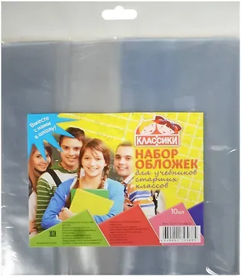 Комплект обложек для учебников старших классов, 10 штук, ПВХ, 120мкм, прозрачные, 232*335мм, Топ-спин.