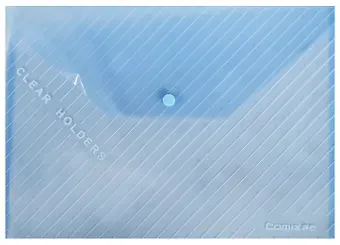 Папка-конверт А4 на кнопке, пластик 0,18мм, прозрачный голубой/белый, Comix. Папка – конверт форматом А6 из плотного цветного пластика. Позволяет аккуратно