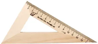 Размер треугольника: длина шкалы — 160 мм, угол — 30°. Угольник с прямым углом — 30° и 60°, изготовлен из твердолиственных пород древесины