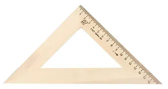 Размер треугольника: длина шкалы — 180 мм, угол — 45°. Равнобедренный угольник с прямым углом изготовлен из твердолиственных пород древесины
