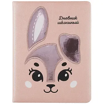 Дневник шк. «ЗАЯЦ» тв.переплёт, поролон, иск.кожа «Шеврет металлик», аппликация из иск.кожи, вышивка, шелкография в две краски, ляссе, инд.