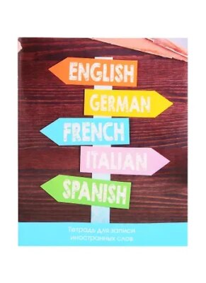 Универсальная тетрадь для записи слов на любом иностранном языке с яркой, привлекательной и плотной обложкой. Удобный карманный формат. Каждая страница