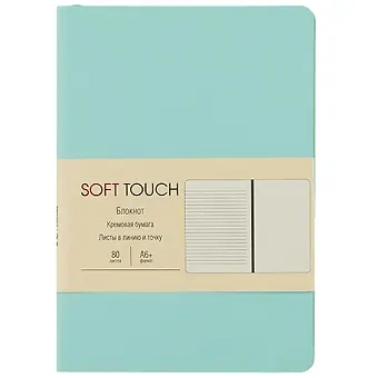 Записная книжка А6 80л «Soft Touch. Весенний мятный» иск.кожа, инт.обл., лин., тчк., нелин., ляссе, инд.уп.