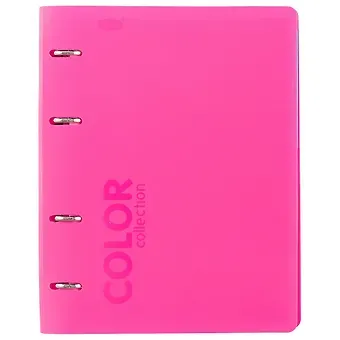 Тетрадь 120 листов, в клетку «NEON PINK» на кольцах, А5, сменный блок, разделители, пластиковая обложка, ярко-розовая.