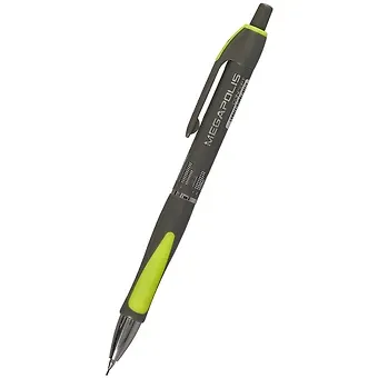 Механический карандаш с металлическим наконечником и убирающейся цангой. Карандаш имеет круглый глянцевый корпус с эргономичной грип-зоной, оснащенной