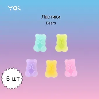 Набор из пяти ластиков в форме мармеладных мишек. Мягкая резина не рвёт бумагу, позволяет быстро и аккуратно стереть ненужные линии или текст.