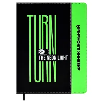 Дневник шк. «НЕОН САЛАТОВЫЙ» тв.переплёт, иск.кожа «Пристин», иск.кожа «Софт-тач», шелкография в три краски, ляссе, инд.уп.