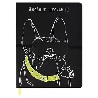 Дневник шк. «МОПС» тв.переплёт, иск.кожа «Плонже», аппликация из иск.кожи, шелкография в две краски, ляссе, застёжка-резинка, инд.уп.