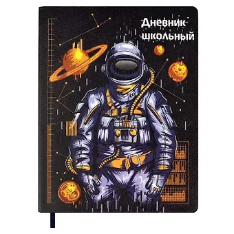 Дневник шк. «КОСМОС» мягк.переплёт, иск.кожа «Наппа», полноцв.печать, ляссе, инд.уп.