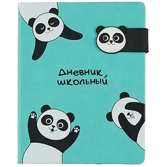 Дневник шк. «ПАНДЫ» тв.переплёт, иск.кожа «Виннер», шелкография в две краски, ляссе, магнитн.клапан, инд.уп.