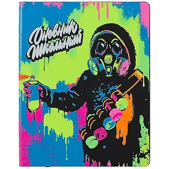 Дневник шк. «ГРАФФИТИСТ» мягк.переплёт, иск.кожа «Виннер», полноцв.неон.печать, ляссе, инд.уп.