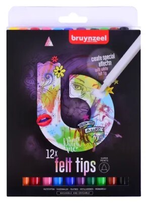 Bruynzeel (Нидерланды) – производитель письменных принадлежностей и товаров для творчества с 1948 года. Набор из 12 фломастеров с толстым наконечником