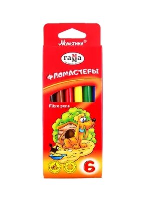 Фломастеры ГАММА серии «Мультики» созданы для комфортного рисования. Конический тип наконечника имеет толщину линии письма 2,2 мм.
