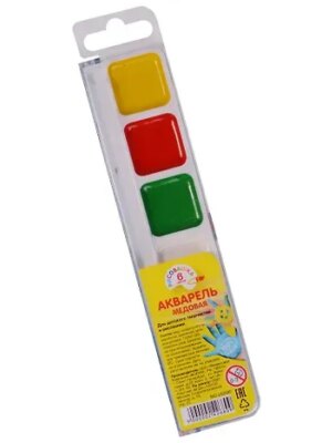 Краски акварельные 6 цветов пластиковая упаковка, без кисти, Рисовашка