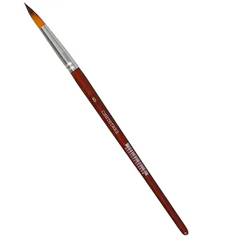 Кисть художественная представляет собой деревянный стилус с хромированной обоймой, зажимающей нормированный волос. Волос прекрасно сохраняет форму, не