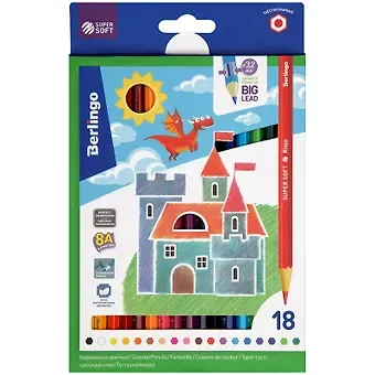 «SuperSoft» — линейка качественно новых цветных карандашей Berlingo. 18 цветов. Шестигранная форма. Указание цвета на каждом карандаше
