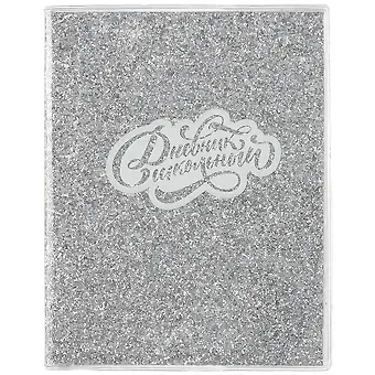 Дневник шк. «ГЛИТТЕР СЕРЕБРЯНЫЙ» ПВХ-обл., мягк.переплёт, глиттерн.полиэстер, шелкография, ляссе, съёмн.обл., инд.уп.