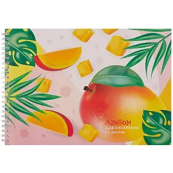 Альбом для рисования 40л А4 «Манго» гребень, мел.картон, выб.лак, блестки «Золото»