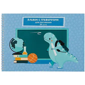 Альбом для рисования 20л А4 «Любознательный динозаврик» гребень, мел.картон, выб.лак, 1л трафарет