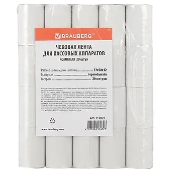 Лента чековая 57мм*37мм*20м 20шт втулка 12мм, термобумага